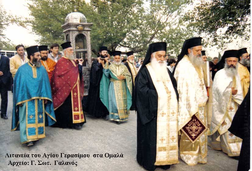 Ο Θείος Γεράσιμος, ο πολύτιμος θησαυρός  της Κεφαλληνίας, είναι Εκείνος που μας παρασέρνει στον λιτανικό του περίπατο προς τον πλάτανο και μας μαθαίνει πώς να αμυνθούμε όταν έλθουν χρόνοι χαλεποί και δύσκολοι. Εκείνος,  που μας συνάζει συχνά στο μοναστήρι του, και μας «παραδίδει» την ωραία ψαλτική ακολουθία του, που πιστοποίει λεκτικά και ακουστικά, στην πραγματική ουσία του Θείου Γέροντος των Ομαλών, τον μεγάλον Δάσκαλο και τον  Άγιο προστάτη των Ορθοδόξων.