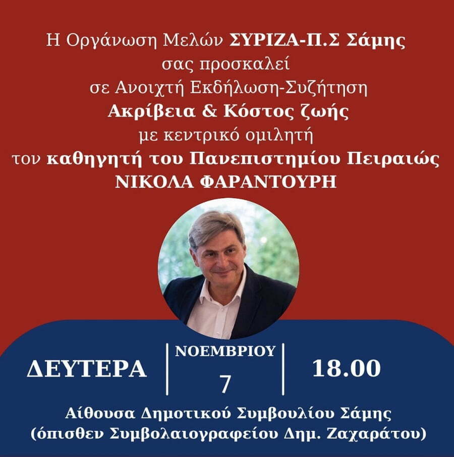 Ανοιχτή εκδήλωση συζήτηση για την ακρίβεια και το κόστος ζωής με ομιλητή τον Νικόλα Φαραντούρη