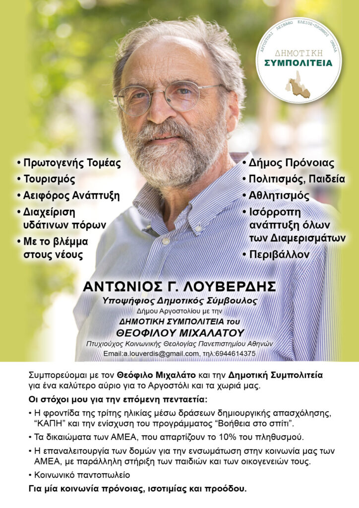 Αντώνης Λουβερδής: Συμπορεύομαι με το Θεόφιλο Μιχαλάτο για ένα καλύτερο αύριο για το Αργοστόλι και τα χωριά μας