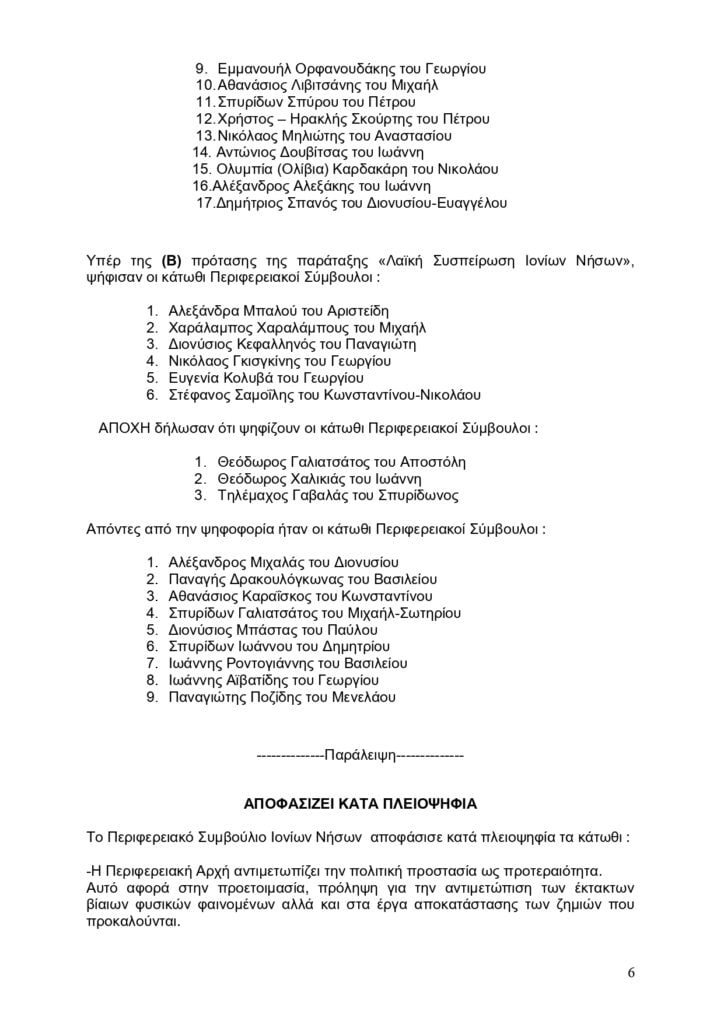 Δίνουμε στην δημοσιότητα το Πρακτικό της Απόφασης, που πέρασε κατά πλειοψηφία προς ενημέρωση όλων. Μελετώντας το, μπορεί να διαπιστώσει κανείς, τις θέσεις αλλά και την στάση κατά την ψηφοφορία, των εκλεγμένων Περιφερειακών Συμβούλων και Συνδυασμών. Ας βγάλει ο καθένας τα συμπεράσματά του.
