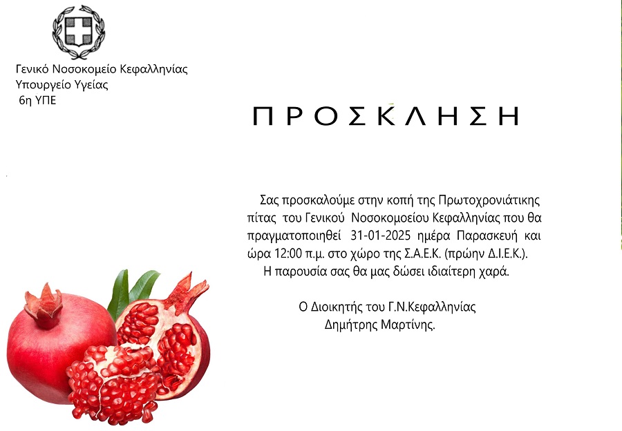 Κόβει την πρωτοχρονιάτικη πίτα του το Γενικό Νοσοκομείο Κεφαλληνίας την Παρασκευή 31 Ιανουαρίου