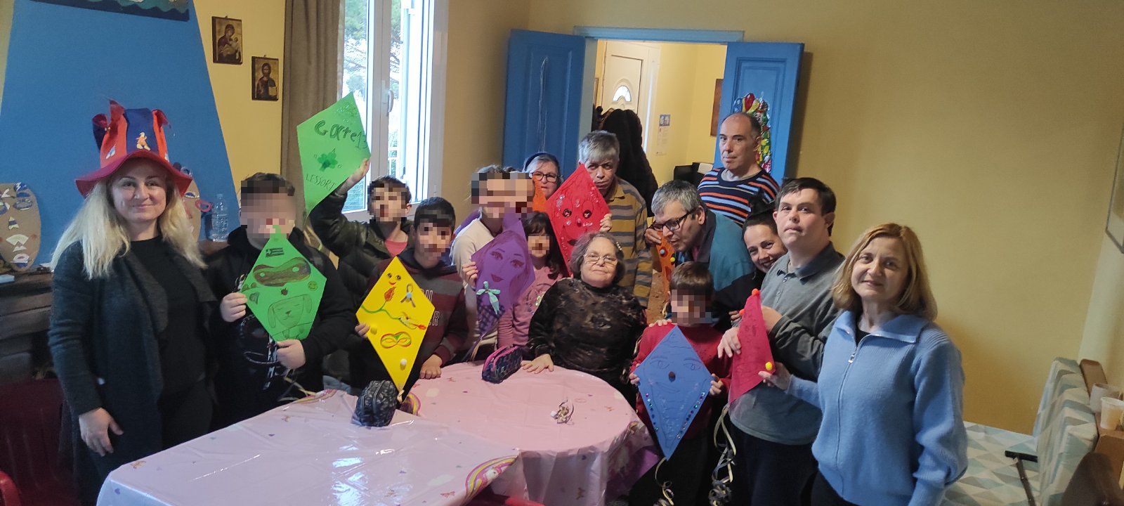 Στο πλαίσιο των Καρναβαλικών εκδηλώσεων του Δήμου Ληξουρίου, το Διοικητικό Συμβούλιο, οι ένοικοι και εργαζόμενοι της Σ.Υ.Δ – «Υπερίων» υποδέχτηκαν με χαρά, το απόγευμα της Πέμπτης 14 Μαρτίου 2024, μια όμορφη παρεούλα μαθητών και μαθητριών της 5ης τάξης του 1ο Δημοτικού Σχολείου Ληξουρίου, συνοδευόμενοι από την γλυκιά τους δασκάλα και κατασκεύασαν πολύχρωμους χαρταετούς μέσα σε κλίμα γιορτής, δημιουργίας και φιλίας.