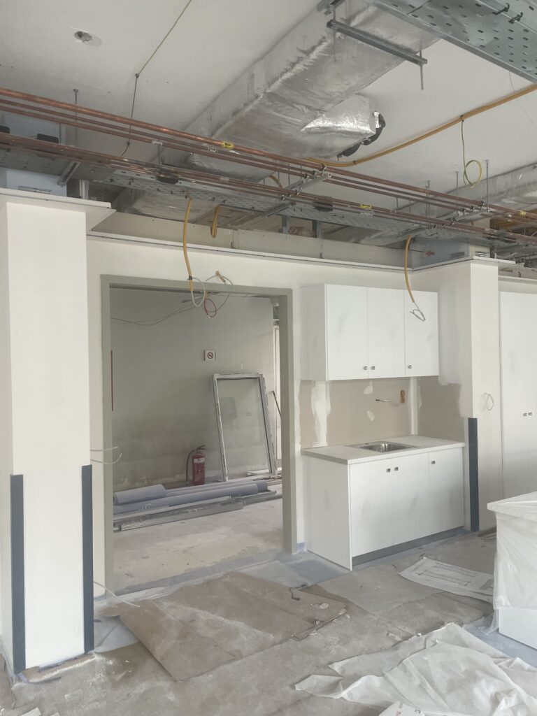 Γίνεται πλήρης ανακαίνιση ολόκληρης της παλιάς μαιευτικής πτέρυγας. Με νέα πατώματα, μπάνια, ντουλάπες, κουφώματα, τοίχους και σύγχρονες υποδομές, οι χώροι μεταμορφώνονται. Μόλις ολοκληρωθεί, η Μαιευτική θα επιστρέψει στον φυσικό της χώρο, από την προσωρινή φιλοξενία της στην πτέρυγα Βεργωτή.