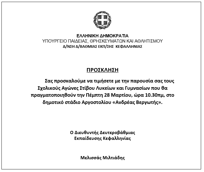 Σχολικοί Αγώνες Στίβου Λυκείων Γυμνασίων- Πέμπτη 28 Μαρτίου ΔΑΚ Αργοστολίου