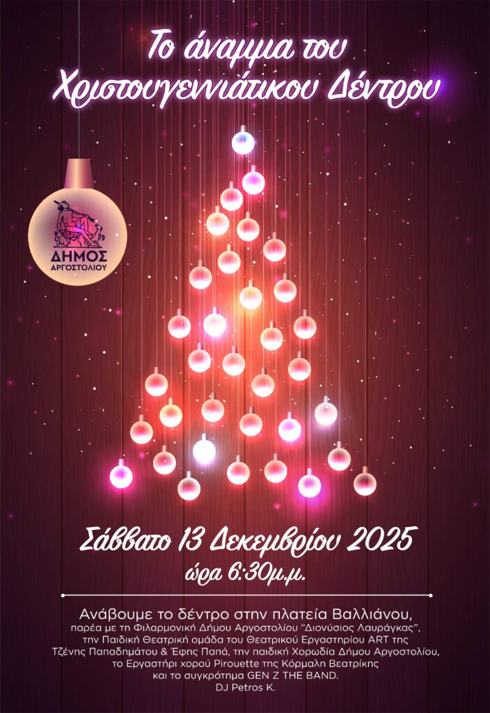Το Σάββατο 13 Δεκεμβρίου η κεντρική πλατεία Αργοστολίου θα γεμίσει φως, χαμόγελα και χριστουγεννιάτικη μαγεία, καθώς θα ανάψουμε το δέντρο μας!