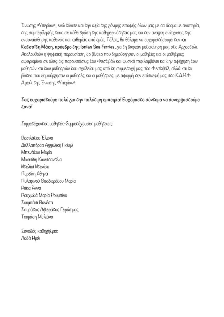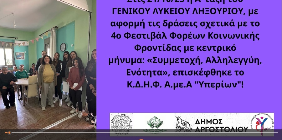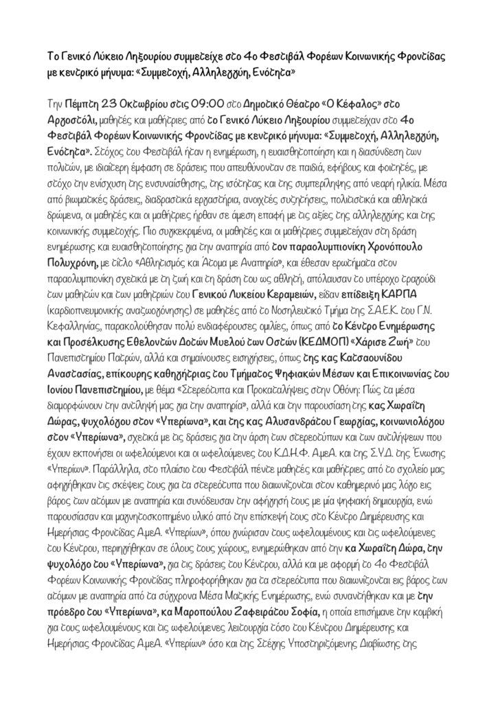 Άρθρο για συμμετοχή Γενικού Λυκείου Ληξουρίου στο 4ο Φεστιβάλ Φορέων Κοινωνικής Φροντίδας