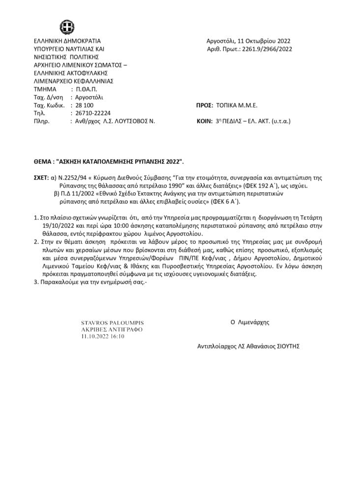 Άσκηση καταπολέμησης της ρύπανσης