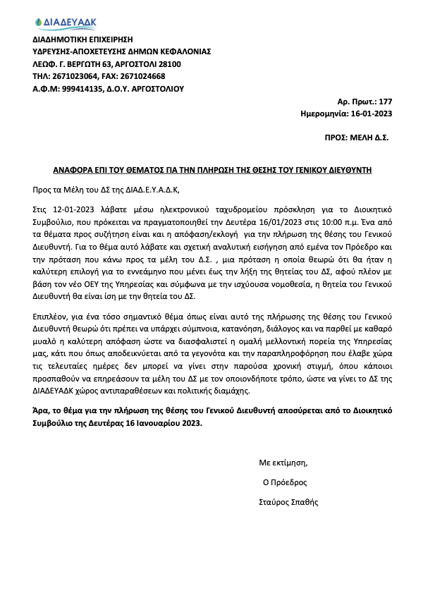 Μετά από τις έντονες αντιδράσεις και την κατακραυγή η δημοτική αρχή Μιχαλάτου υποχώρησε ατάκτως στο θέμα του βολέματος του κουμπάρου του Δημάρχου για τη θέση του γενικού διευθυντή της ΔΕΥΑΚ.