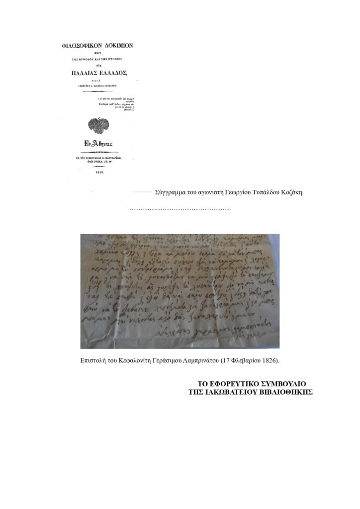 Έκθεση τεκμηρίων “Οι Κεφαλονίτες το 1821” στην Ιακωβάτειο Βιβλιοθήκη