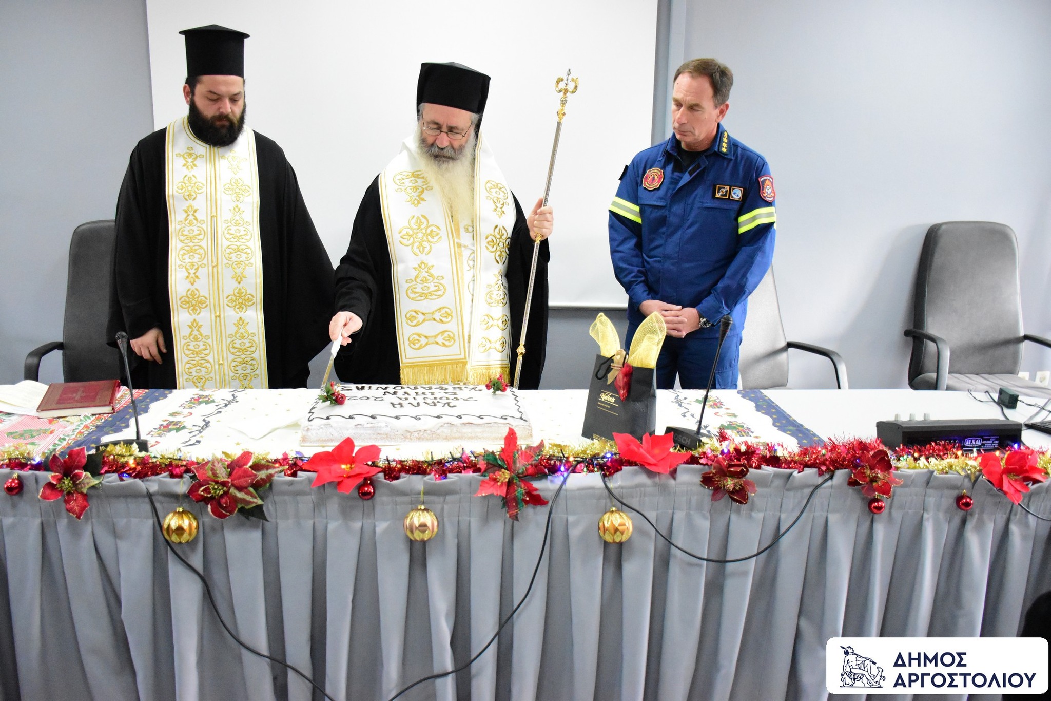 Την βασιλόπιτα ευλόγησε και έκοψε ο σεβασμιώτατος Μητροπολίτης Κεφαλληνίας κ.κ. Δημήτριος, ενώ ο Διοικητής της Πυροσβεστικής Υπηρεσίας Κεφαλονιάς Πύραρχος κ. Μιλτιάδης Καραγεωργιάδης, ευχαρίστησε τους ανθρώπους της Τοπικής Αυτοδιοίκησης, τις ΕΟΔ και την Πολιτική Προστασία για την άψογη συνεργασία που είχε μαζί τους τον χρόνο που πέρασε.