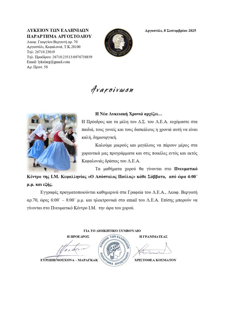 Έναρξη νέας Λυκειακής χρονιάς-Ξεκινούν οι εγγραφές στα τμήμα του Λυκείου Ελληνίδων