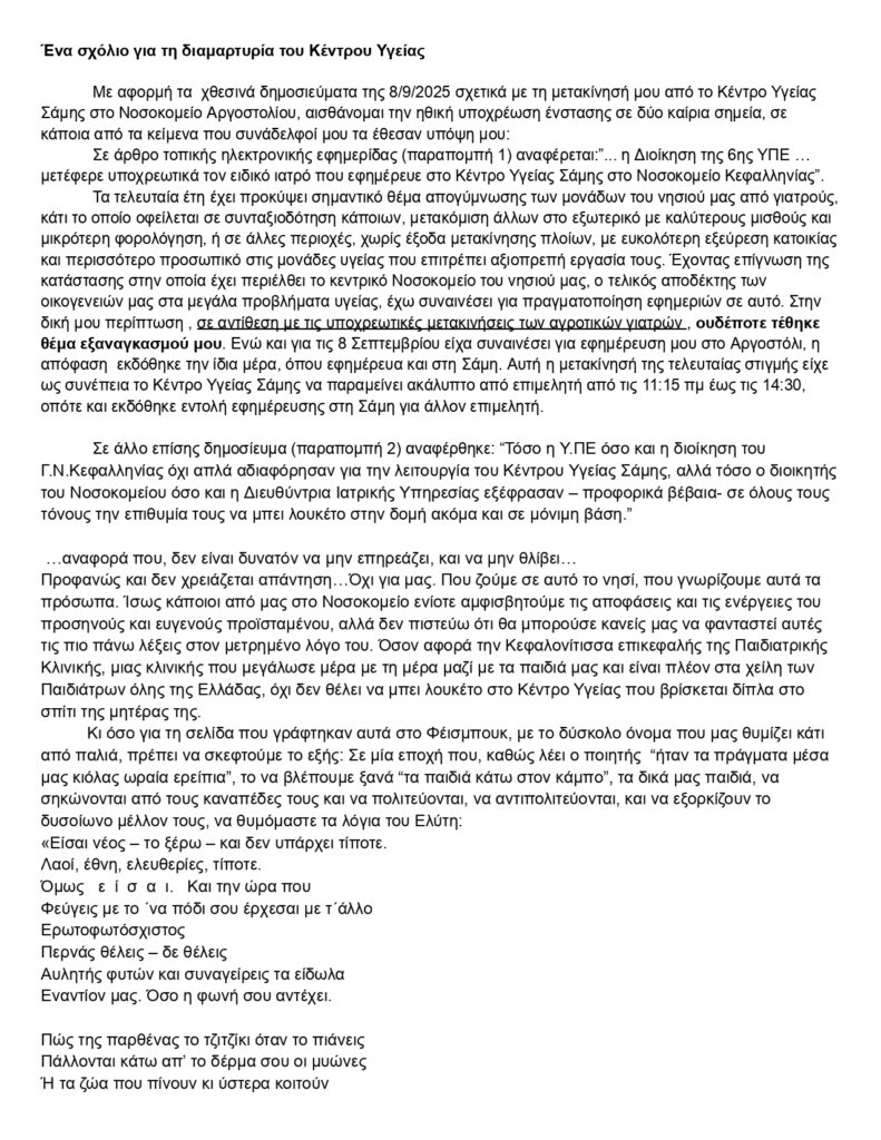 Νικόλας Μοσχόπουλος: Ένα σχόλιο για τη διαμαρτυρία του Κέντρου Υγείας
