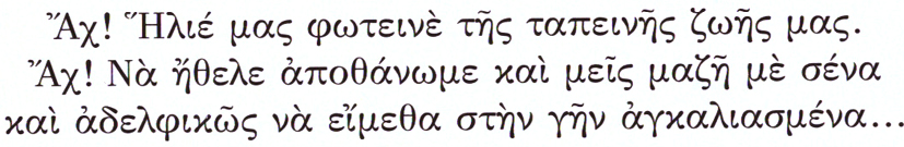 Αχ! Να ήθελε αποθάνωμε και μεις μαζή με σένα