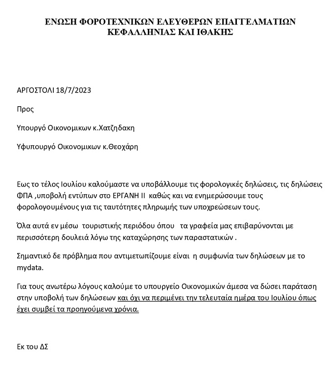Αίτημα για παράταση φορολογικών δηλώσεων από την Ένωση Φοροτεχνικών