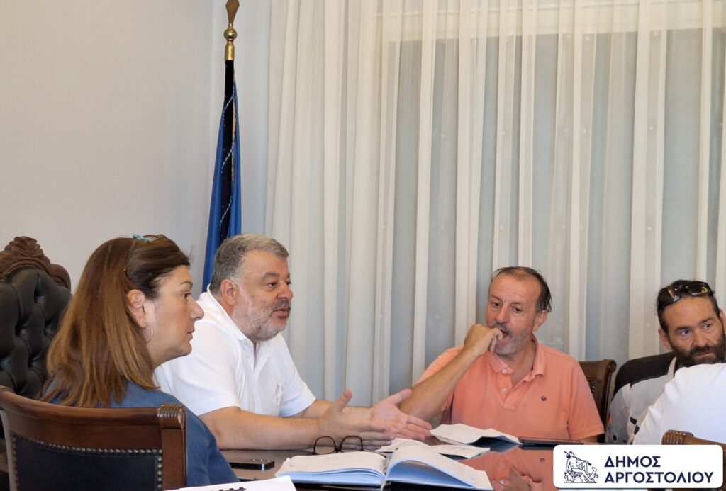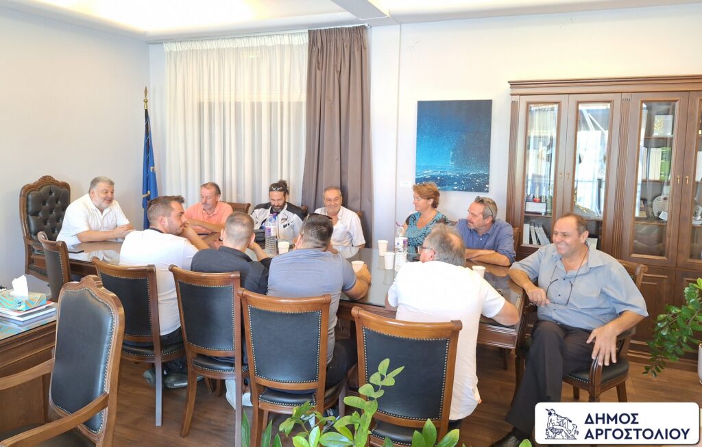 Με αφορμή τις πρόσφατες αυτοψίες που διενεργήθηκαν από την Κτηματική Υπηρεσία στον Κατελειό, ο Δήμαρχος Αργοστολίου κ. Θεόφιλος Μιχαλάτος και ο αντιδήμαρχος κ. Διονύσης Μινέτος, υποδέχθηκαν την Τρίτη 1η Οκτωβρίου 2024, στον Δήμο, επαγγελματίες της περιοχής, προκειμένου να συζητήσουν μαζί τους πιθανές λύσεις για την αντιμετώπιση του προβλήματος.
