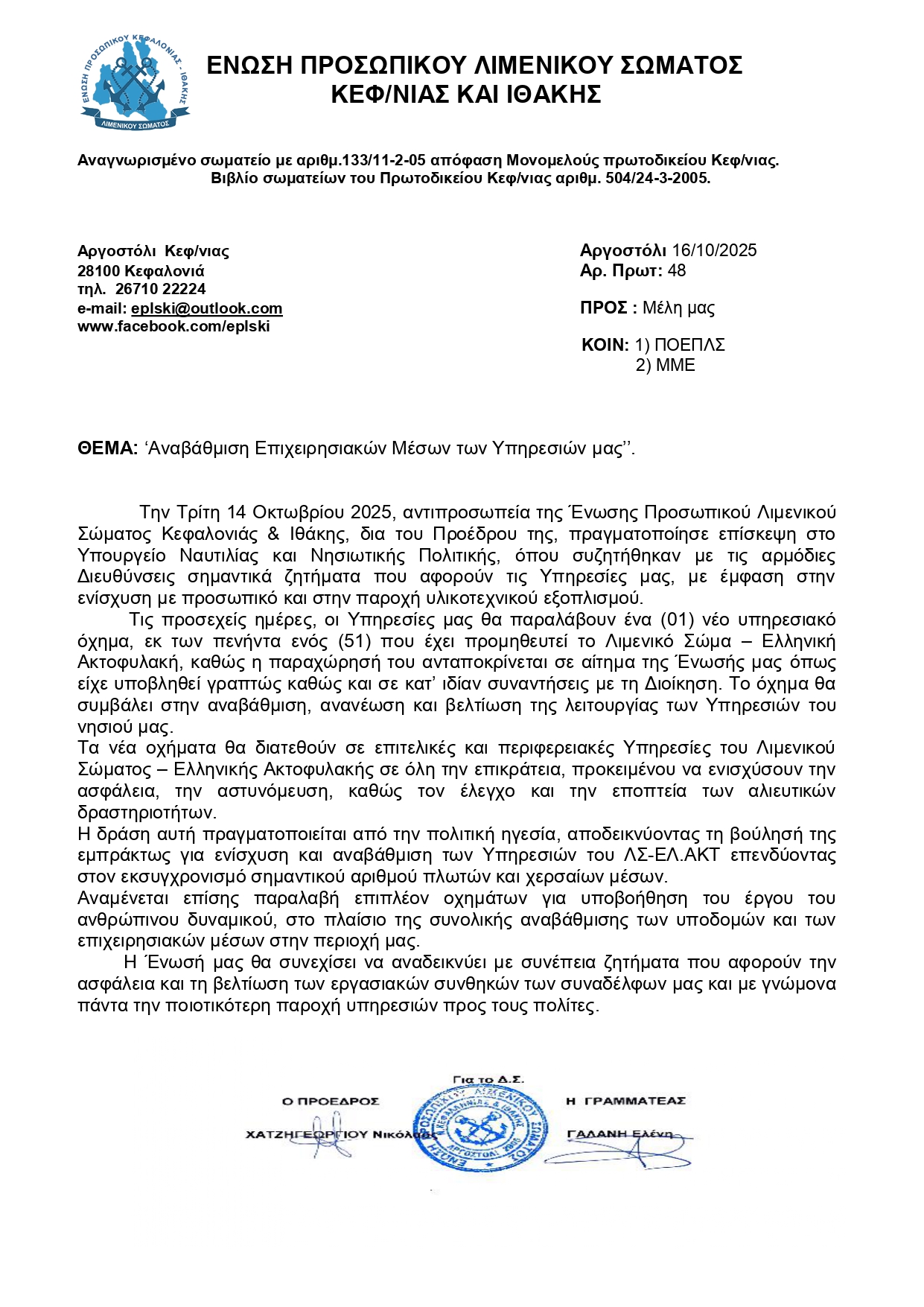 Αναβάθμιση των επιχειρησιακών μέσων του Λιμενικού Σώματος