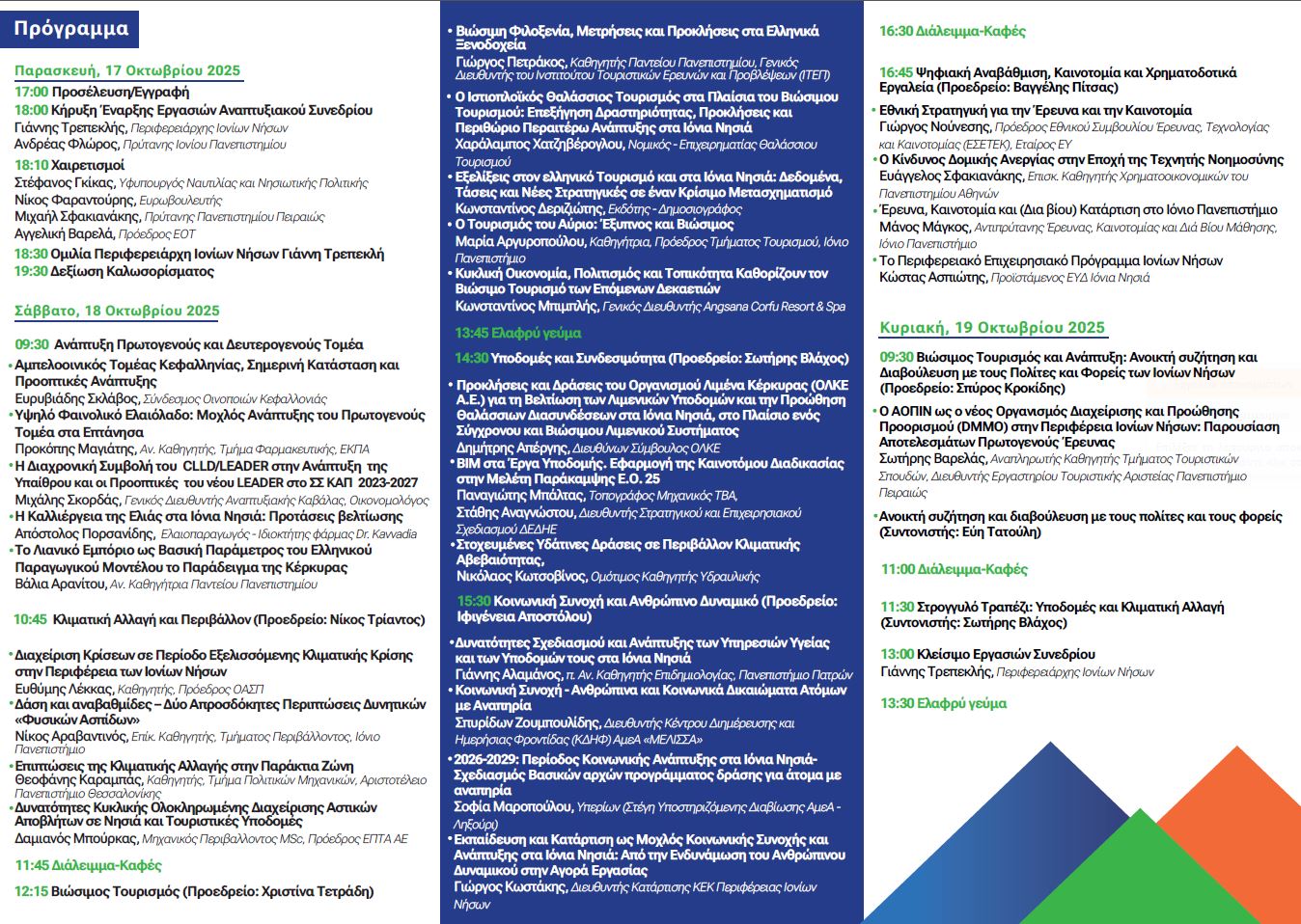 Το συνέδριο αποτελεί μια σημαντική πρωτοβουλία διαλόγου και στρατηγικού σχεδιασμού, που αποσκοπεί στη διαμόρφωση ενός σύγχρονου, βιώσιμου και καινοτόμου μοντέλου ανάπτυξης για τα Ιόνια Νησιά.