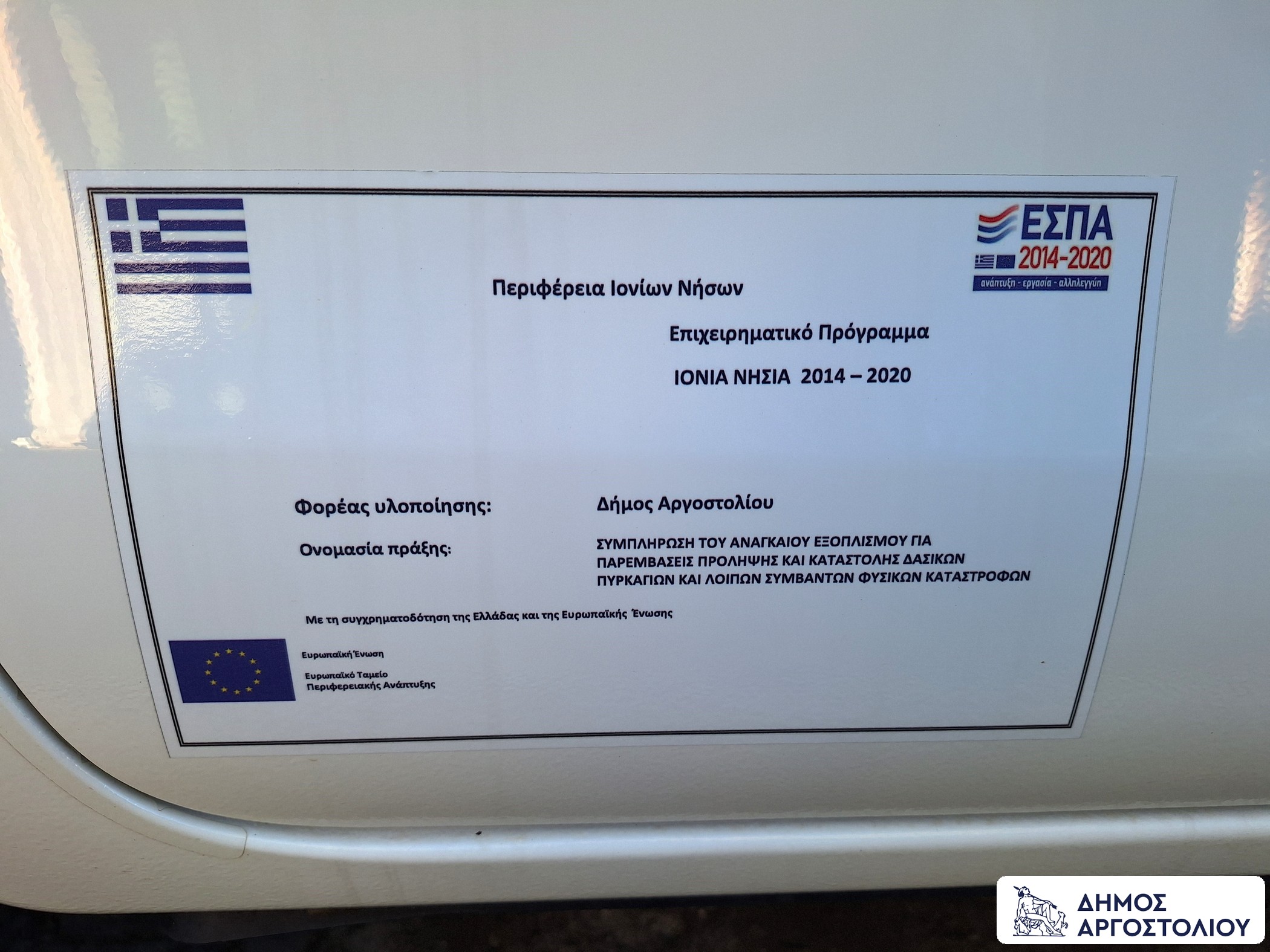 Η απόκτηση του νέου εξοπλισμού πραγματοποιήθηκε μέσω του Επιχειρησιακού Προγράμματος «Ιόνια Νησιά 2014-2020».