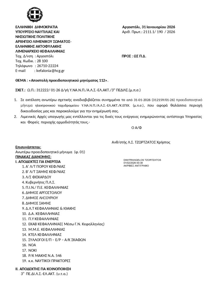 Αποστολή προειδοποιητικού μηνύματος 112