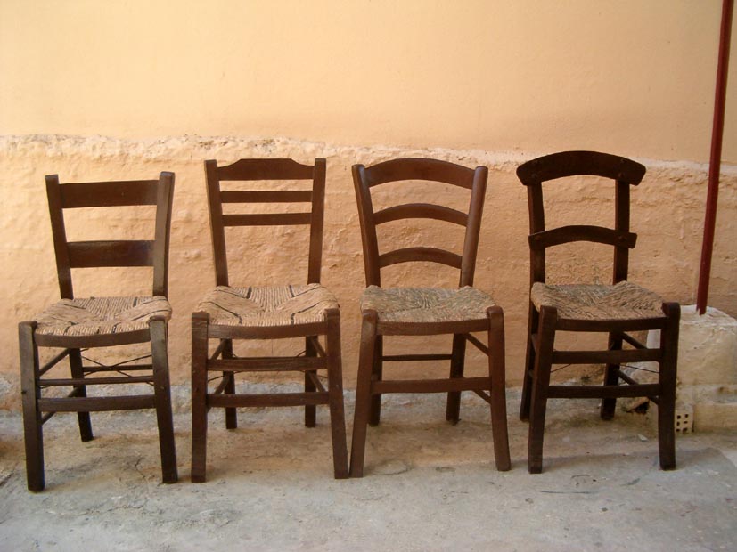 Τα πιο παλιά χρονιά οι καρέκλες ήταν κατασκευασμένες από ψαθί και ξύλο. Τότε, μιλούσαμε για την ψάθινη καρέκλα του σπιτιού, του καφενείου, του υπαίθριου σινεμά…. Οι καρέκλες ήταν κατασκευασμένες, στο σκελετό τους από ξύλο σκληρό, συνήθως από μουριά, από οξιά ή πλάτανο. Το σχήμα της καρέκλας ήταν τέτοιο, ώστε να στηρίζει το σώμα μας και να παίρνει τη σωστή θέση του σκελετού (θέση ορθής γωνίας) όταν καθόμαστε, ώστε να μην κουράζεται το σώμα, έτσι ώστε να αποφεύγονται τα προβλήματα υγείας, που δημιουργούνται από την κακή στάση του σώματος.