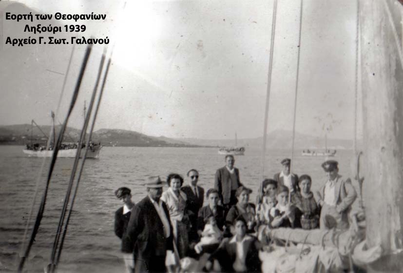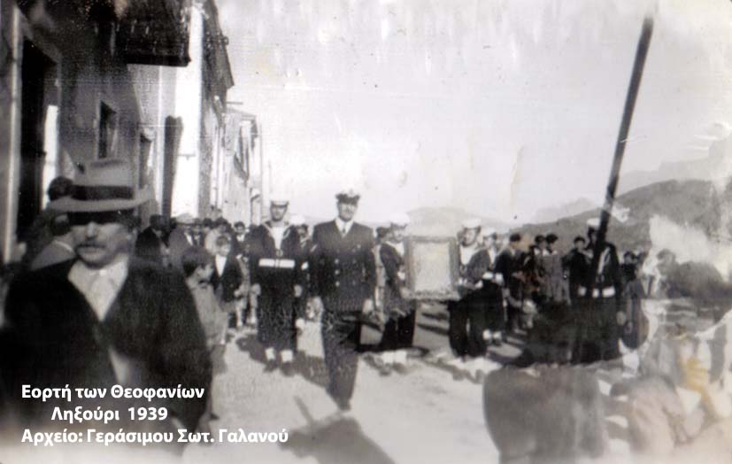 Έρχεται το φέρυ-μπωτ από το Αργοστόλι με τον Μητροπολίτης μας και τη συνοδεία του. Αράζει, γιομίζει κόσμο, ιερείς, επισήμους και το σώμα της Φιλαρμονικής και «σηκώνει» πόρτα πλέοντας λίγο στα ανοικτά από την προκυμαία, ώστε να τοποθετηθεί απέναντι από την παραλία που βρίσκεται ο πολύς κόσμος. Γίνεται η Βάπτιση, αμολούνε περιστέρια και τέσσερις πέντε νεαροί πέφτουν στα κρύα νερά για να βρούνε το Σταυρό. Βάρκες, καΐκια και κάθε λογής πλεούμενο κορνάρει ως ένδειξη χαράς και συμμετοχής. Πολλά πλεούμενα είναι και από το Αργοστόλι που συνοδεύουν το φερυ-μπωτ για να συμμετέχουν με τον τρόπο τους στη χαρά της Βάπτισης