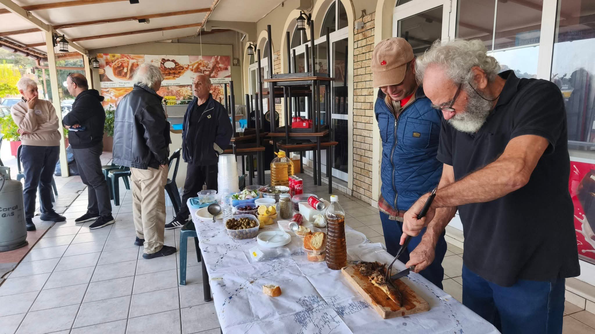 Το τραπέζι πρόσφερε δωρεάν στους πολλούς συμπολίτες μας που παραβρέθηκαν ο “Πρόνησος!” Πιο συγκεκριμένα, είχαν ετοιμαστεί γευστικά  εδέσματα από τα μέλη του συλλόγου και κατοίκους του Πόρου. Ακόμα, ο Χαράλαμπος Κουρκουμέλης με τη φλόγα του καμινέτου του έψησε την παραδοσιακή ρέγγα. Τα πεντανόστιμα Μπουρμπουρέλια τα μαγείρευαν η Ευανθία Σιμωτά και η Έφη Χάλαρη!