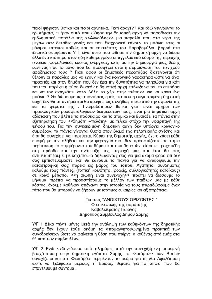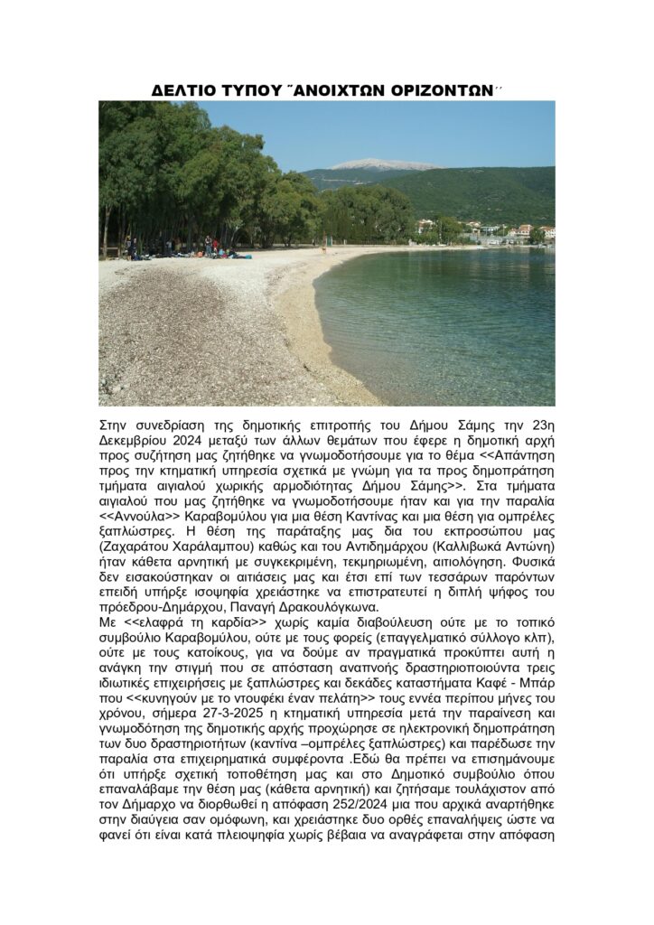 Γιώργος Καβαλλιέρατος “Ανοιχτοί Ορίζοντες”: Χωρίς καμία διαβούλευση η παραλία “Αννούλα” στα χέρια ιδιωτών