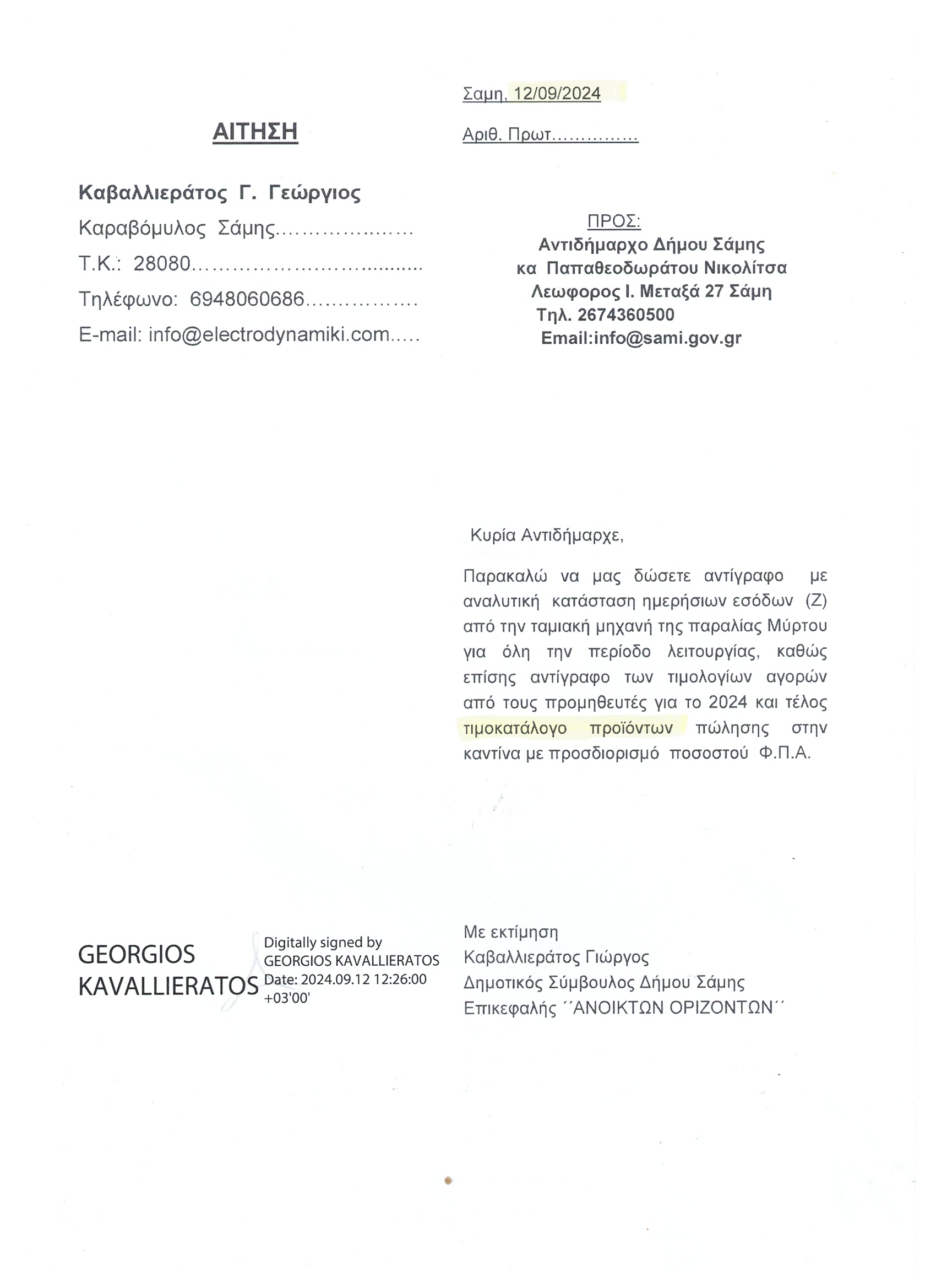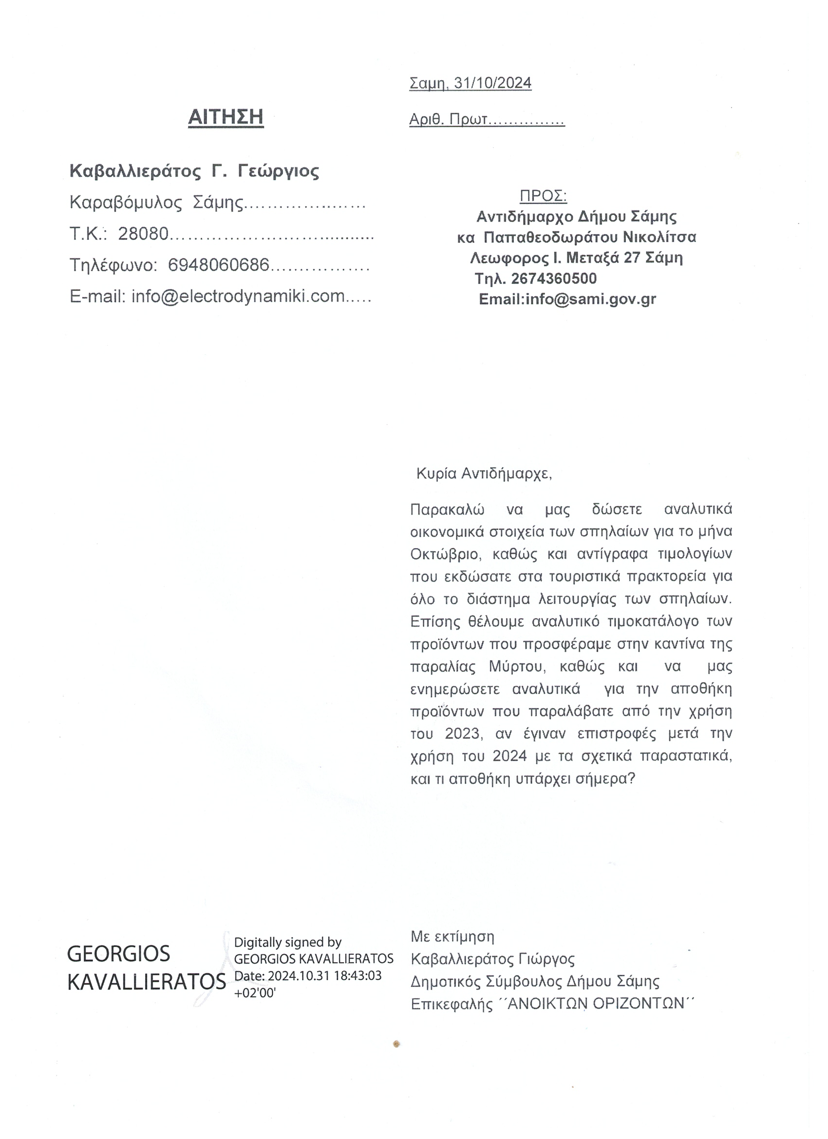 Επανερχόμαστε στις 31/10/2024 με νέα αίτηση που ζητάμε συμπληρωματικά στοιχεία καθώς και τον εξαφανισμένο τιμοκατάλογο, η οποία αίτηση μέχρι και σήμερα δεν έχει απαντηθεί.
