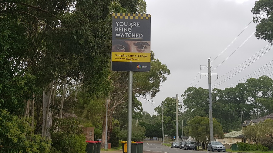 Το καταπράσινο προάστιο του Σίδνεϊ Κουάκερς Χιλ. Η πινακίδα προειδοποιεί: Για το πέταγμα σκουπιδιών επιβάλλεται πρόστιμο μέχρι 8.000 δολάρια.