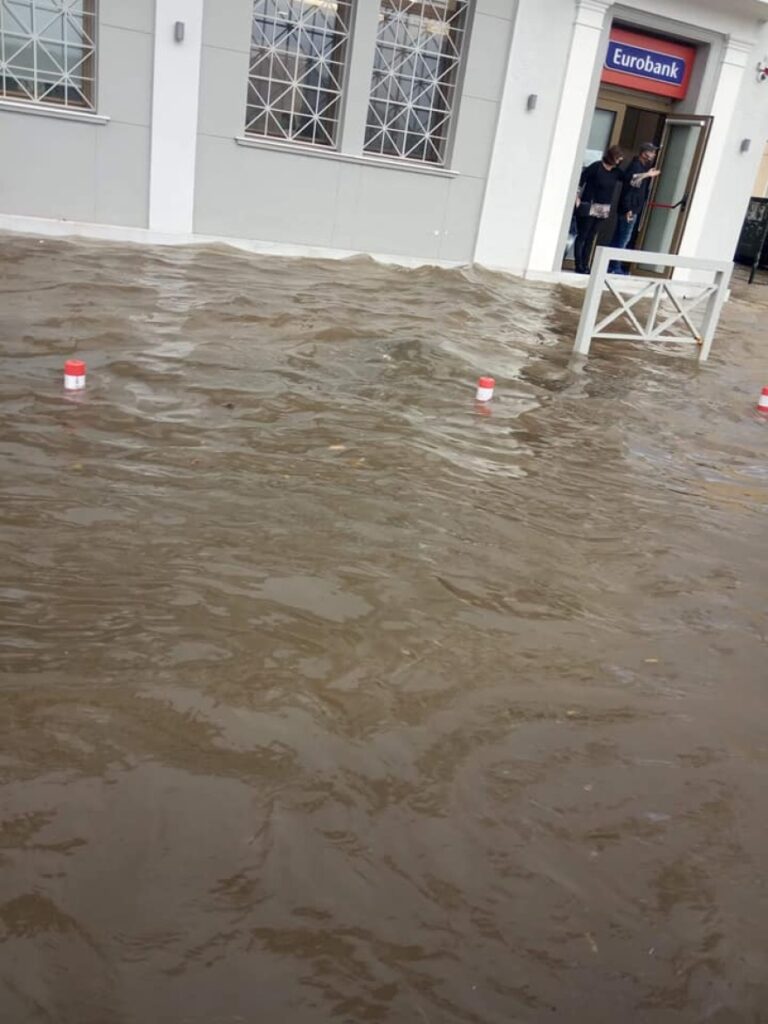 Το νερό υπερπηδά την προστασία και εισχωρεί στον δρόμο.