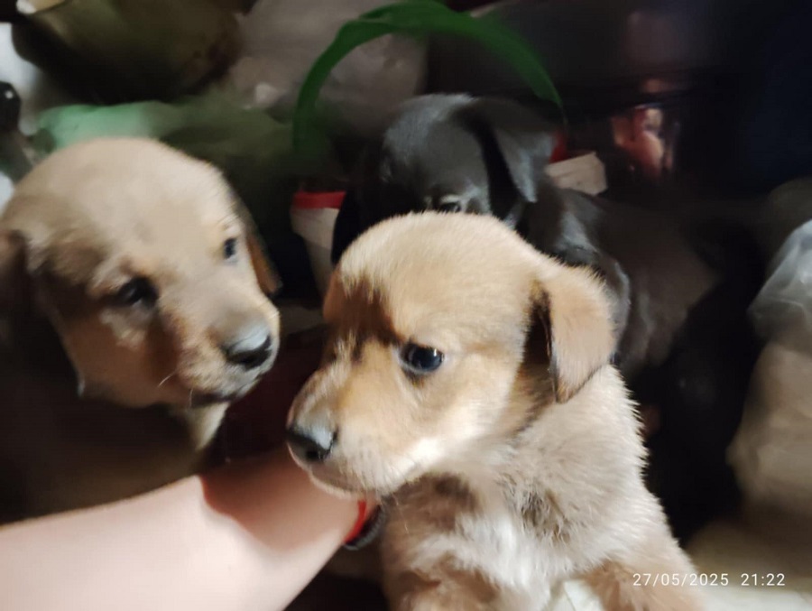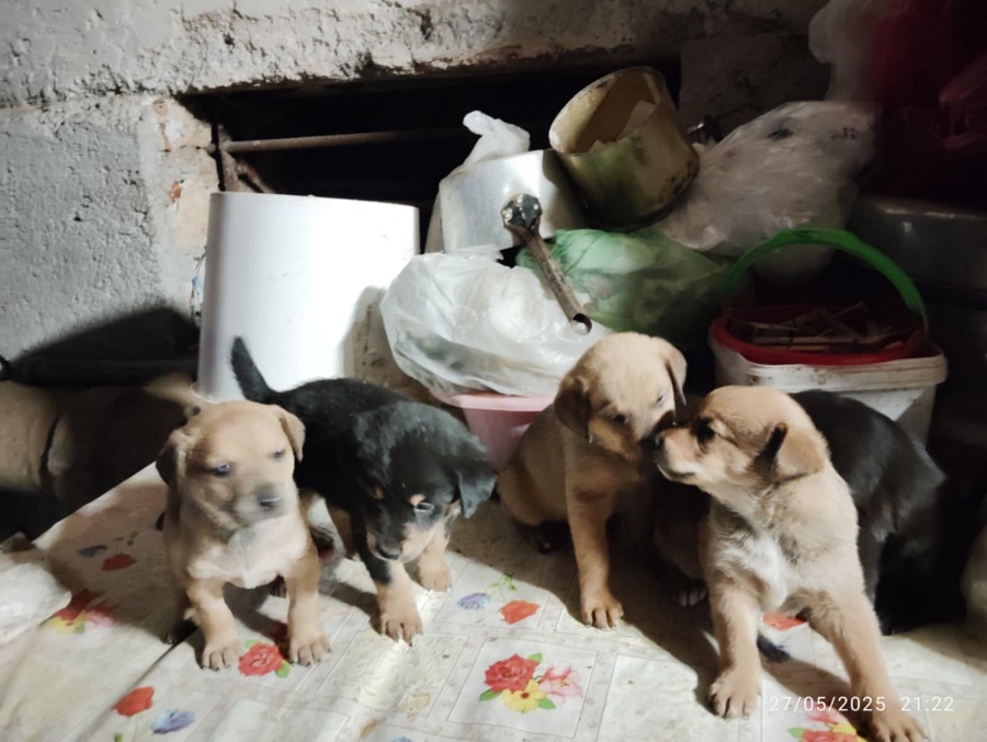 Τα εικονιζόμενα κουτάβια βρέθηκαν δίπλα σε κάδο απορριμμάτων και φιλοξενούνται προσωρινά από εθελόντρια φιλόζωο. Είναι περίπου 2 μηνών και αναμένεται να γίνουν περίπου 20-25 κιλά. Είναι τέσσερα αρσενικά και ένα θηλυκό. Αναζητούν την παντοτινή τους οικογένεια. Θα δοθούν αποπαρασιτωμένα, εμβολιασμένα και θα τους γίνει δωρεάν στείρωση όταν φτάσουν στην κατάλληλη ηλικία.