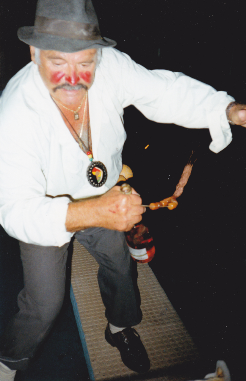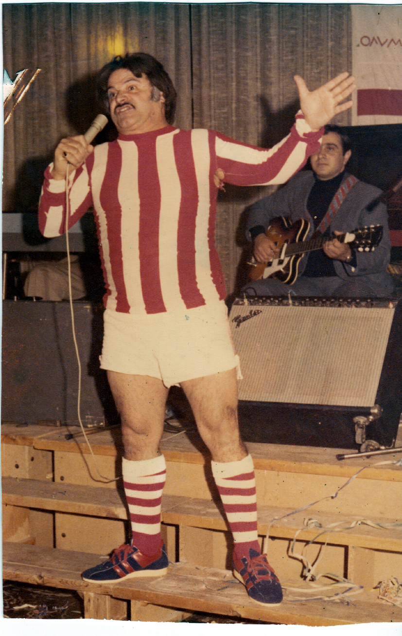Σε μια εσπερίδα συμπατριωτών μας Κεφαλλήνων και Ιθακησίων ο Βαγγέλης είδε τον καθρέπτη του, είδε κάποιον που ως εμψυχωτής έδινε παράσταση. Ξαφνικά  το αγυιόπαιδο του Ληξουρίου,  ένα από κείνα που κυνηγούσαν οι παιδονόμοι, ήρθε στην παλιά εικόνα της ζήση του,  που,   αναμορφωμένη ευγενικά, γιομάτος  πείρα και εμπιστοσύνη στον εαυτό του, δοκίμασε με πολλή επιτυχία να δίνει και αυτός παραστάσεις  χαράς.