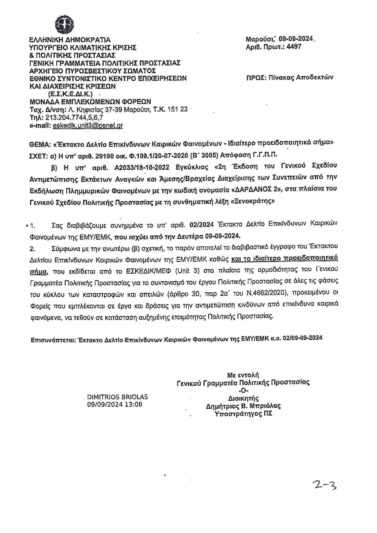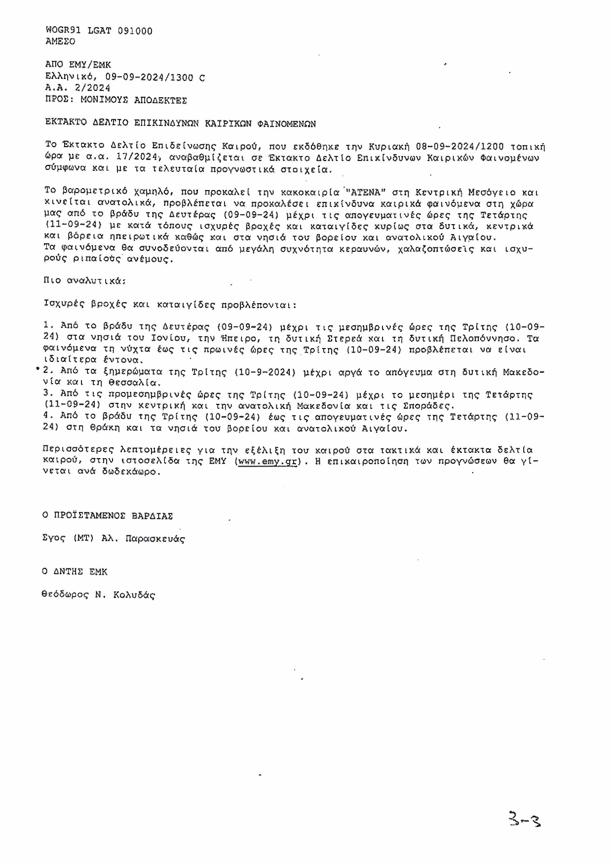 Δελτίο επικίνδυνων καιρικών φαινομένων