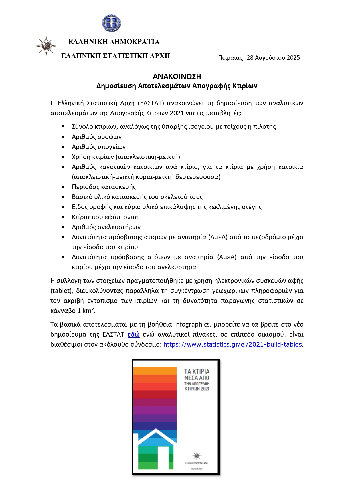 Δημοσίευση Αποτελεσμάτων Απογραφής Κτιρίων 2021