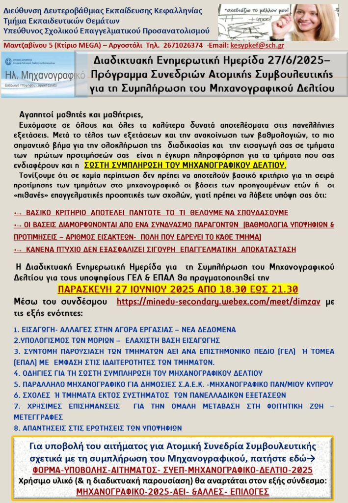 Διαδικτυακή ενημερωτική ημερίδα “Συμπληρώνω σωστά το μηνογραφικό δελτίο” την Παρασκευή 27 Ιουνίου