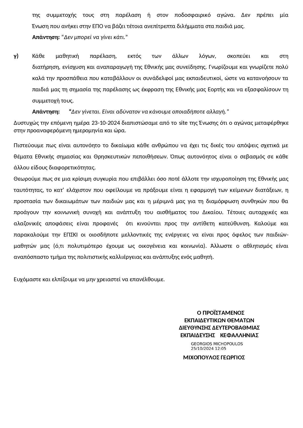 Διαμαρτυρία προς Ένωση Ποδοσφαιρικών Σωματείων Κεφαλληνίας- Ιθάκης
