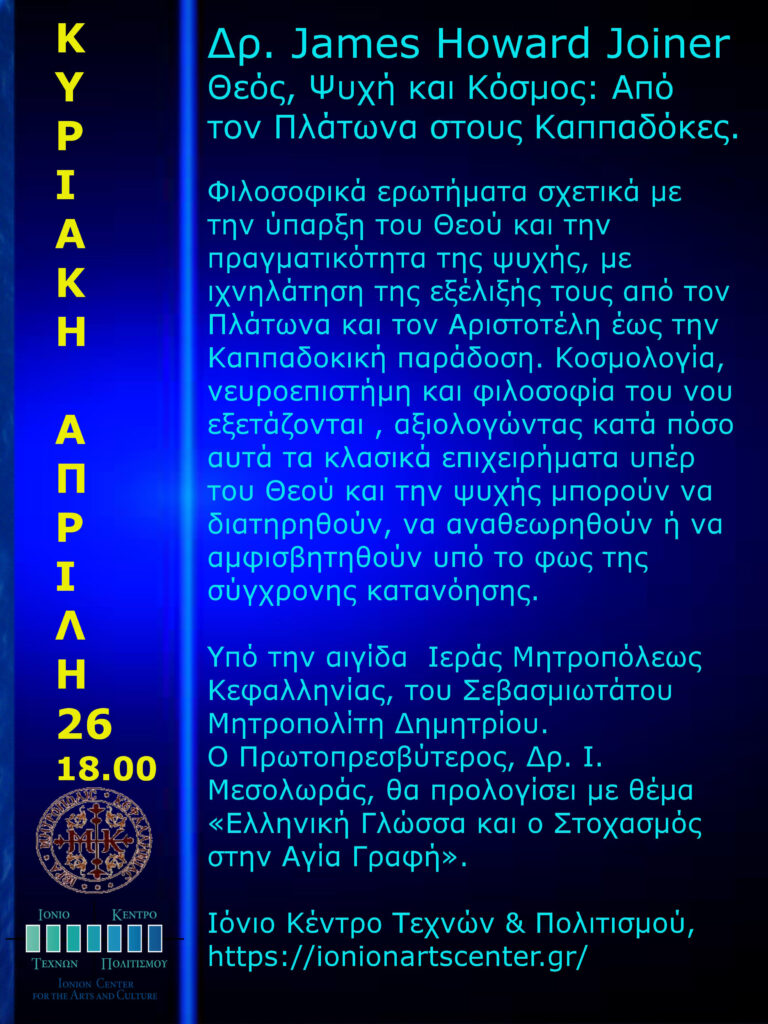 Δρ. James Howard Joiner: Θεός, Ψυχή και Κόσμος: Από τον Πλάτωνα στους Καππαδόκες
