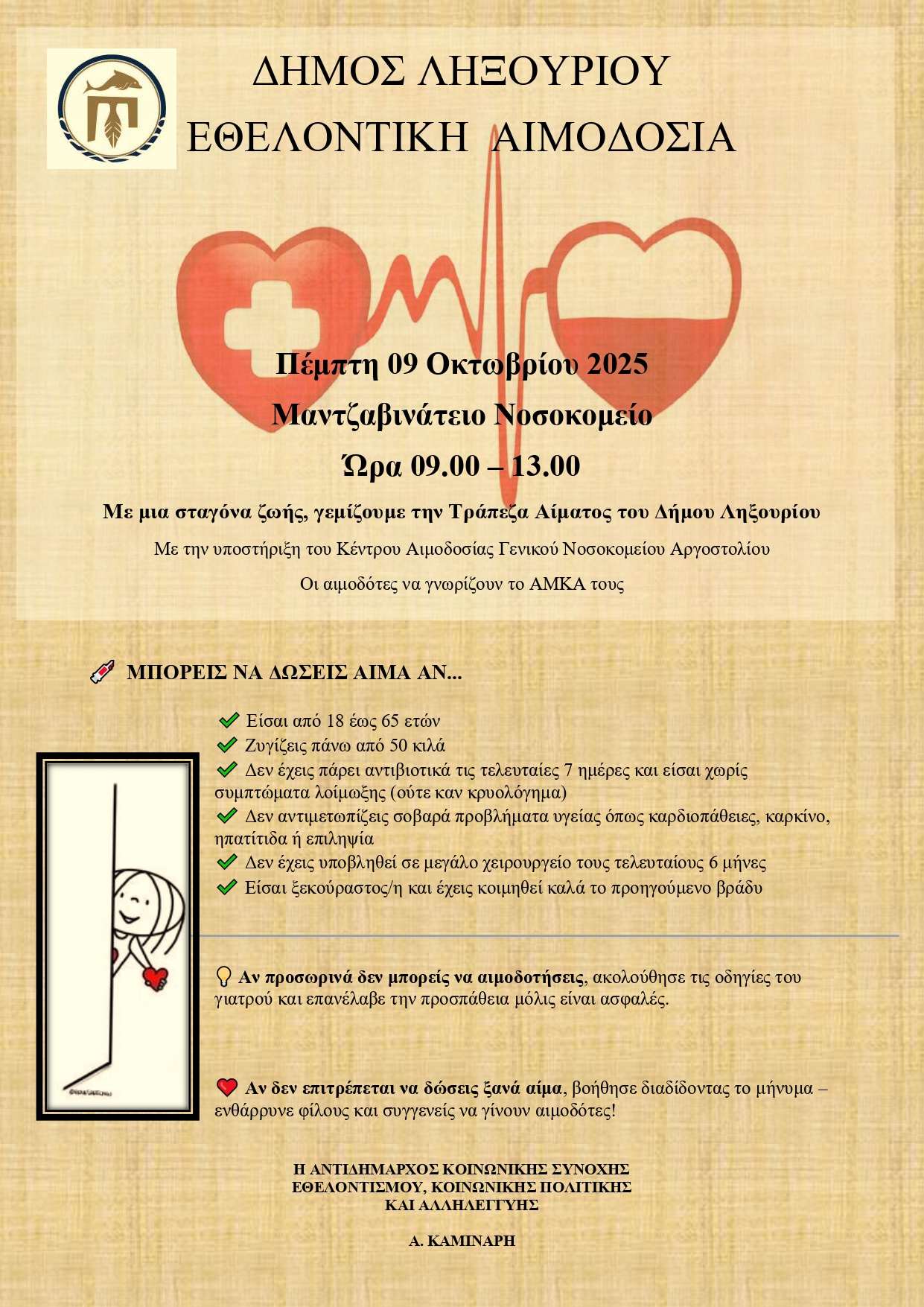Εθελοντική αιμοδοσία την Πεμπτη 9 Οκτωβρίου στο Μαντζαβινάτειο Νοσοκομείο
