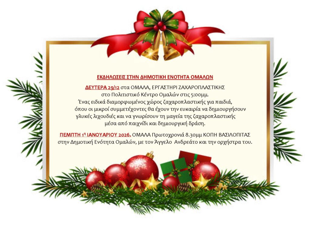 Εκδηλώσεις στην Δημοτική Ενότητα Ομαλών έως 1 Ιανουαρίου 2026