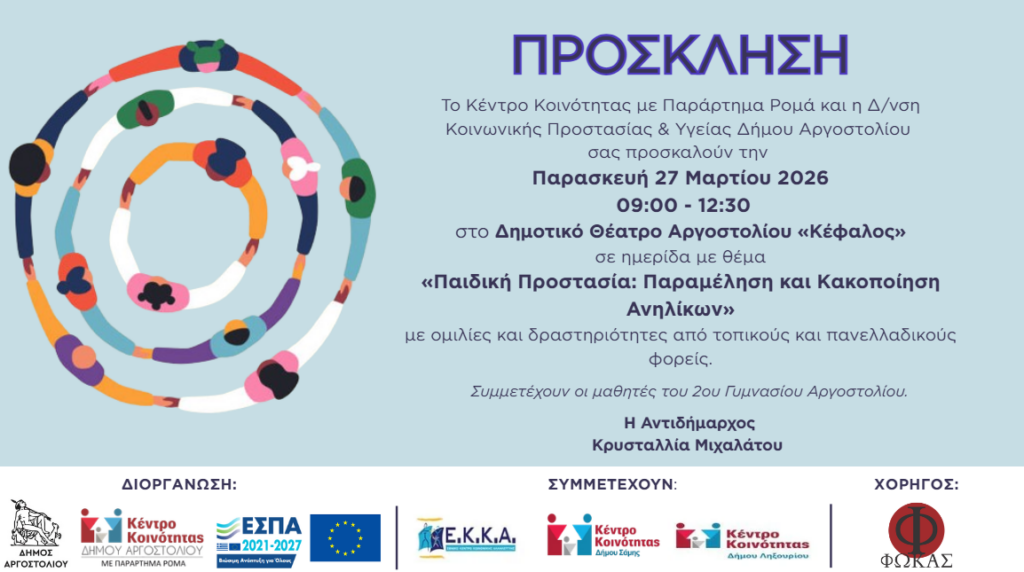 Η Κοινωνική Υπηρεσία «Κέντρο Κοινότητας με Παράρτημα Ρομά» και η Δ/νση Κοινωνικής Προστασίας και Υγείας του Δήμου Αργοστολίου, στο πλαίσιο των δράσεων πρόληψης, ενημέρωσης και ευαισθητοποίησης της μαθητικής κοινότητας, διοργανώνουν εκπαιδευτική και ενημερωτική δράση με θέμα:
