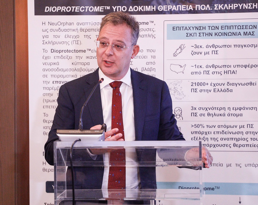 Στην Ελλάδα η Πολλαπλή Σκλήρυνση με βάση πρόσφατη φαρμακοεπιδημιολογική μελέτη επηρεάζει περισσότερους από 21.200 ασθενείς με μέση ηλικία διάγνωσης τα 30 έτη. Με στόχο την ανάπτυξη μιας θεραπείας που όχι μόνο θα σταματά την πρόοδο της νόσου, αλλά ενδεχομένως και θα την αναστρέφει, η NeuOrphan LTD (συμφερόντων Ελληνικής Ομογένειας στην Αυστραλία που κατέχει την πνευματική ιδιοκτησία του νέου ερευνητικού φαρμάκου) σχεδιάζει να διεξαχθούν στην Ελλάδα οι Ευρωπαϊκές Κλινικές Δοκιμές υπό την επωνυμία «Odyssey».