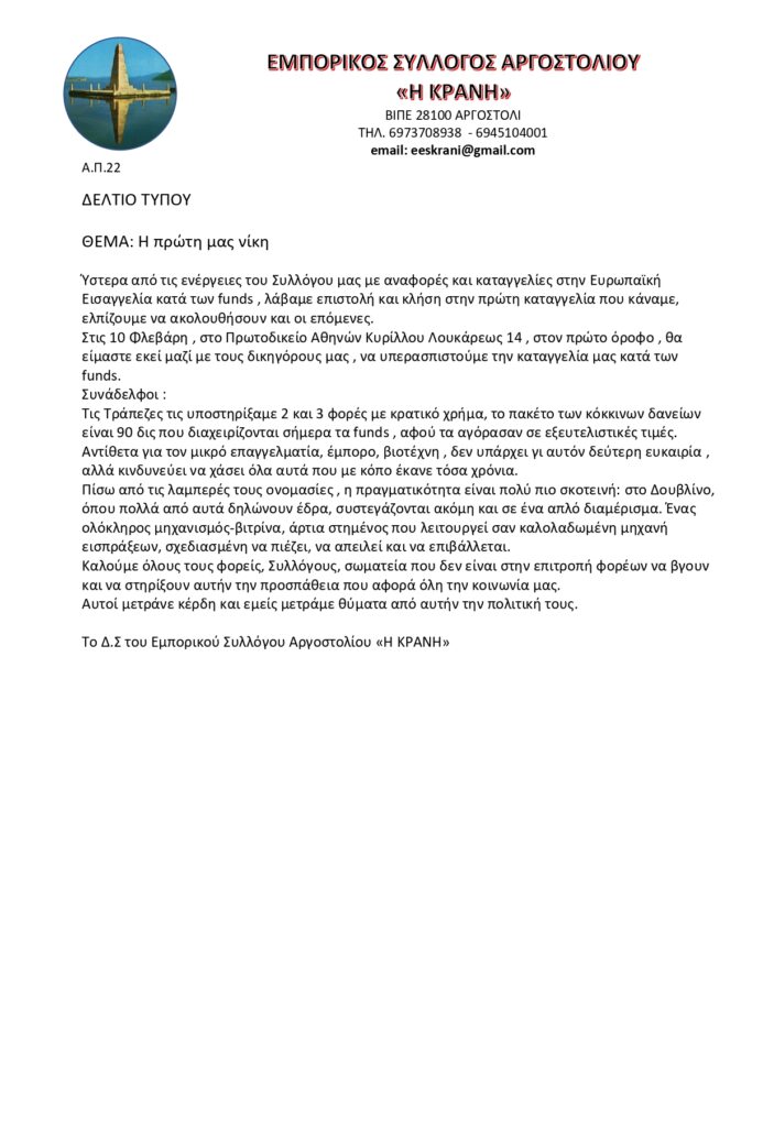 Εμπορικός Σύλλογος Η Κράνη: Η πρώτη μεγάλη νίκη απέναντι στα funds
