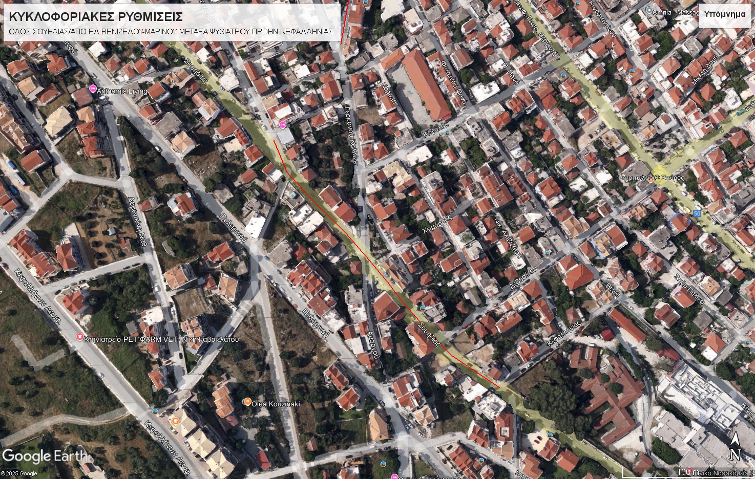 ΟΔΟΣ «ΣΟΥΗΔΙΑΣ» από «Ελ. Βενιζέλου» έως «Μαρίνου Μεταξά Ψυχιάτρου» (πρώην «Κεφαλληνίας») για μήκος 250 μέτρων.