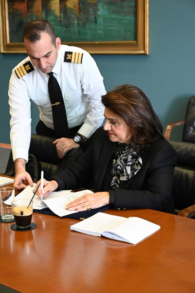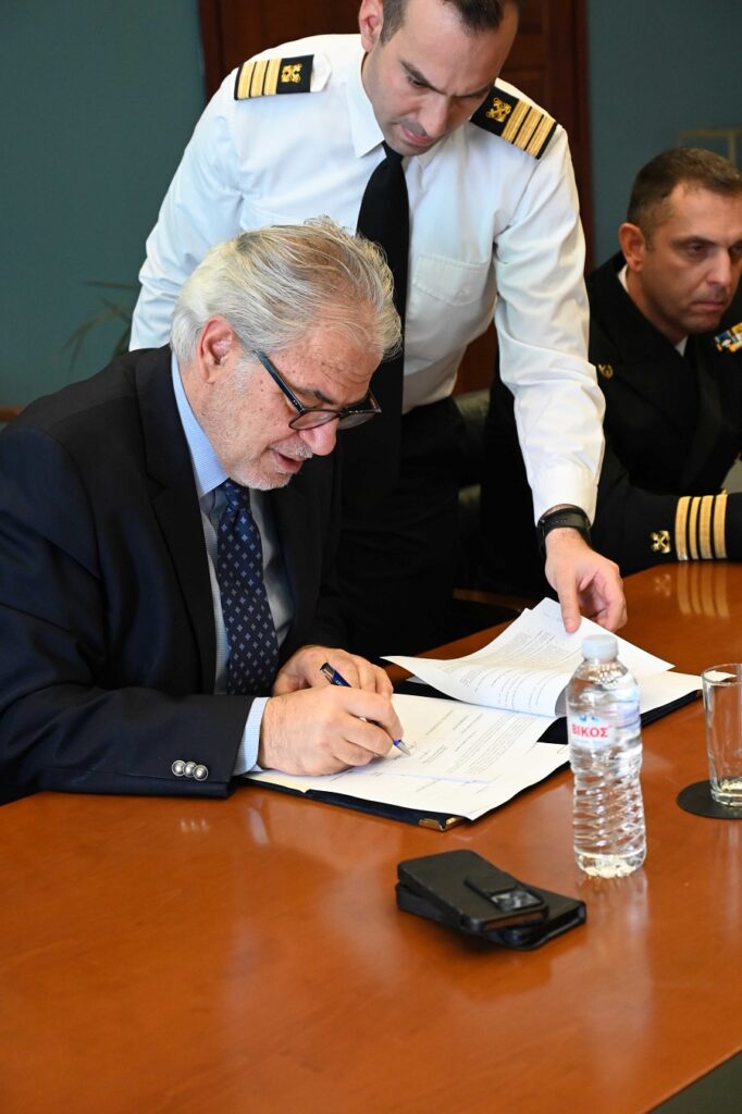 Υπογραφή συμφωνίας παραχώρησης ηλεκτρονικού εξοπλισμού και Συστημάτων Μη επανδρωμένων μέσων (εναέρια – υποβρύχια) α – Ελληνική Ακτοφυλακή από τον Υπουργό Ναυτιλίας και Νησιωτικής Πολιτικής, κ. Χρήστο Στυλιανίδη και την Περιφερειάρχη Ιονίων Νήσων, κα Ρόδη Κράτσα – Τσαγκαροπούλου (14.12.2023)