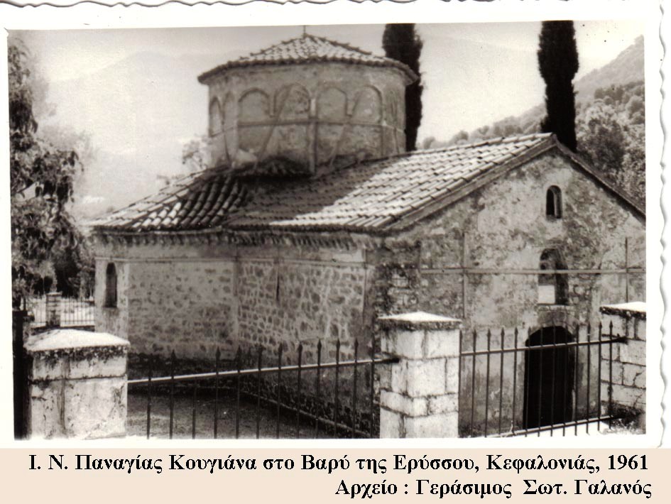 Ο ναός της Παναγίας Κουγιάνας στο Βαρύ της Ερύσσου, αναφέρεται από πολύ παλιά στο Πρακτικό της Λατινικής Επισκοπής Κεφαλληνίας 1264 μ. Χ και από παλιές παραδόσεις ο ναός χρονολογείται γύρω στα 1100 μ. Χ.