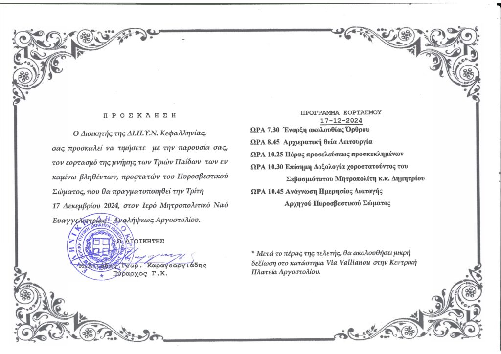 Εορτασμός Προστατών Πυροσβεστικού Σώματος