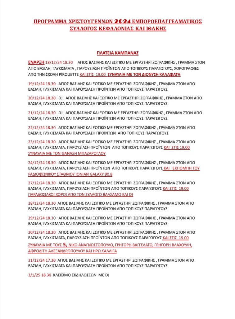 Εορταστικές εκδηλώσεις του Εμποροεπαγγελματικού Συλλόγου-Συναυλία απόψε με τον Διονύση Καλαφάτη στην πλατεία Καμπάνας