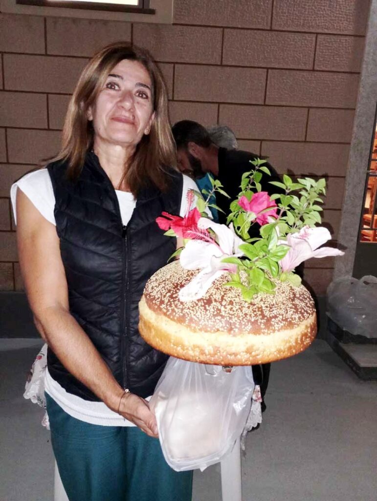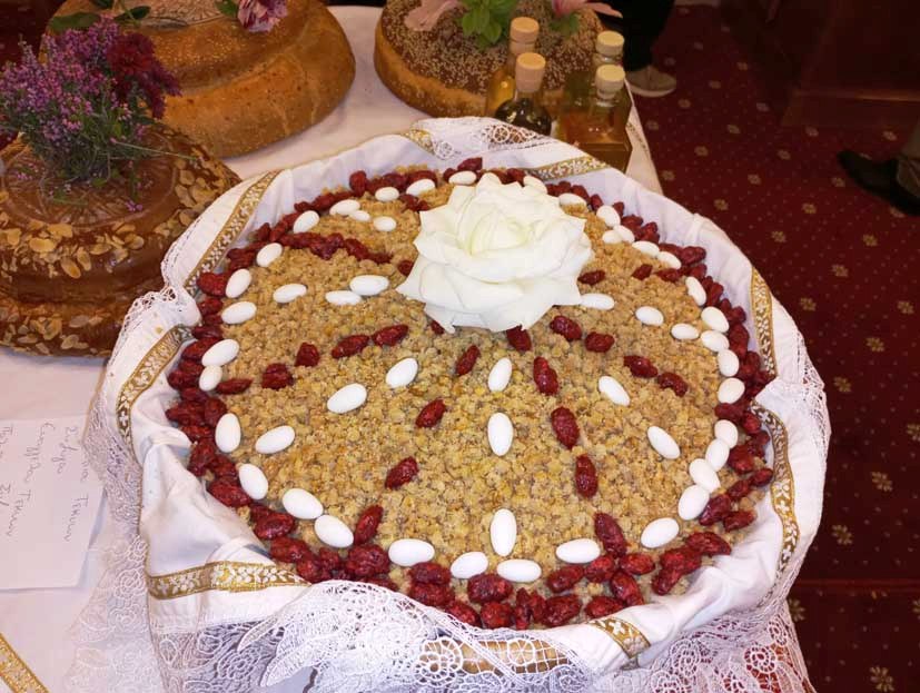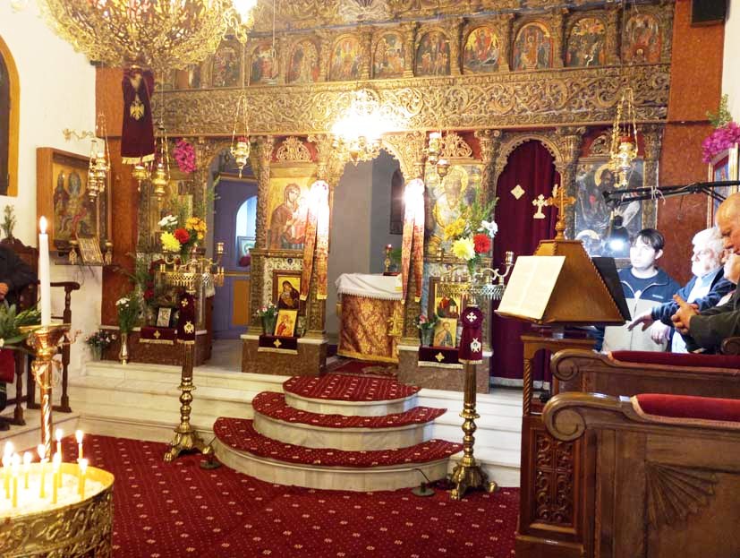 Δεν είμαστε πολλοί στο εκκλησίασμα, γύρω στα 25 άτομα. Στον καλανάρχο, ο Παναγής Κοψαχείλης, η Ελένη Φιλιππάτου- Βεργωτή και ο Δημήτρης Παπαοικονόμου, ένας φέρελπις ψάλτης που βρίσκεται στο νησί μας εργαζόμενος σε μια δημόσια υπηρεσία. Ο ιερέας ήταν ο παπα- Ανδρέας Σβορώνος, που με τη σπιρτοσύνη του σε προκαλεί να συμμετέχεις τόσο όμορφα στις εκκλησιαστικές τελετές, προσεκτικά και κατανυκτικά. Οι χωριανοί Ζολιώτες ήταν αρκετοί και είχαν φέρει και την αρτοκλασία τους και τα σπερνά τους, που ήταν τόσο όμορφα διακοσμημένα με μάντολες, με ρόδια, με λουλούδια, με στάρι «κραταιό στη βράση του».