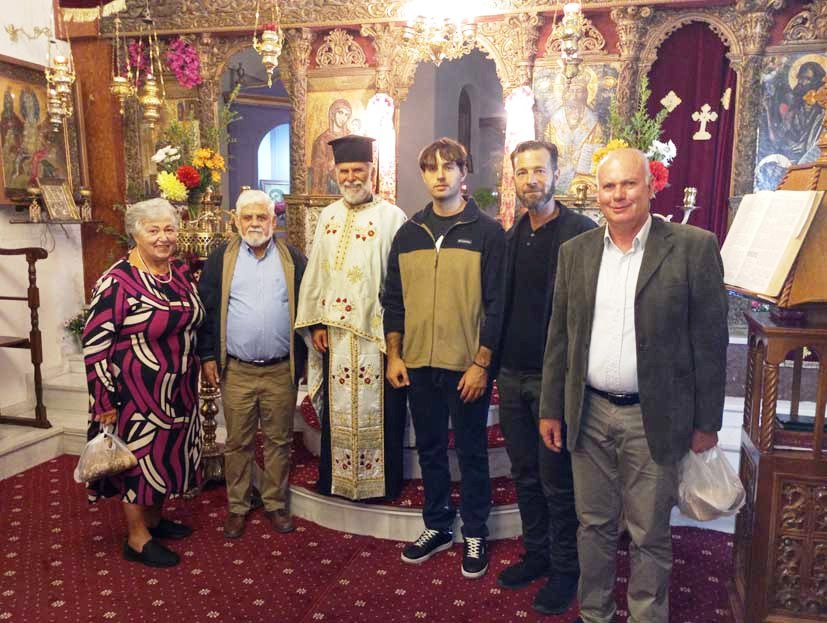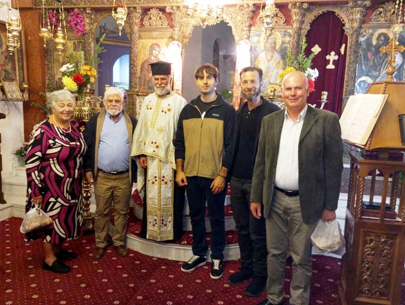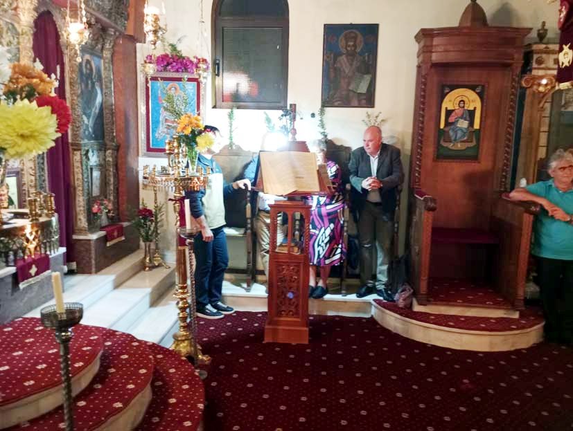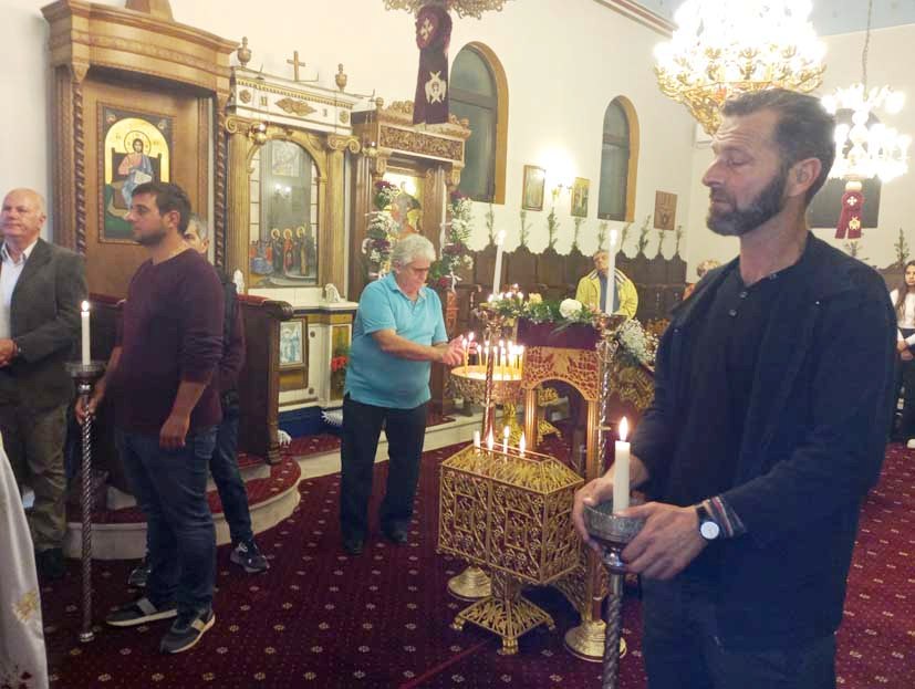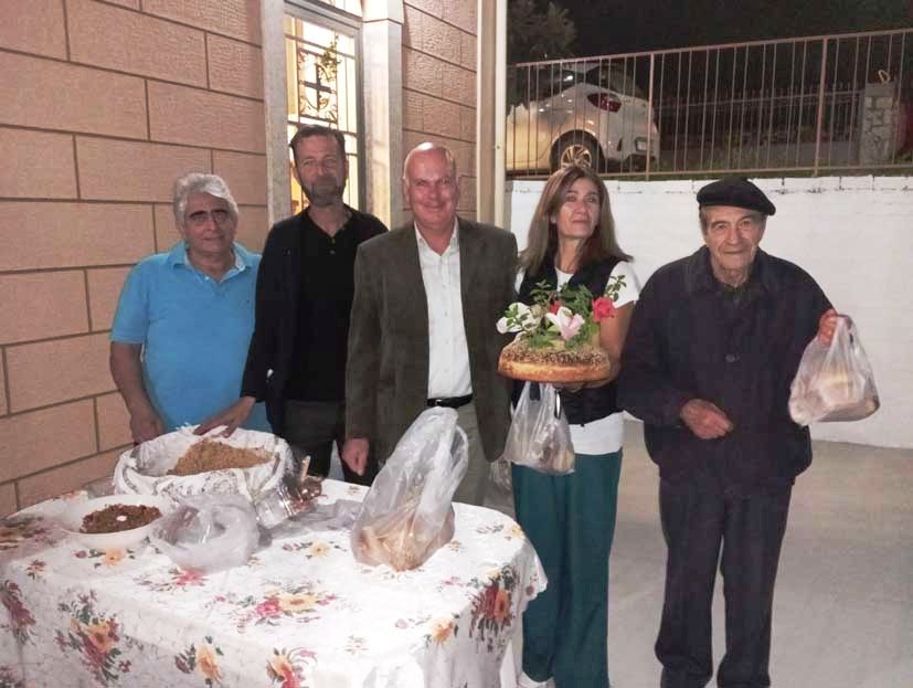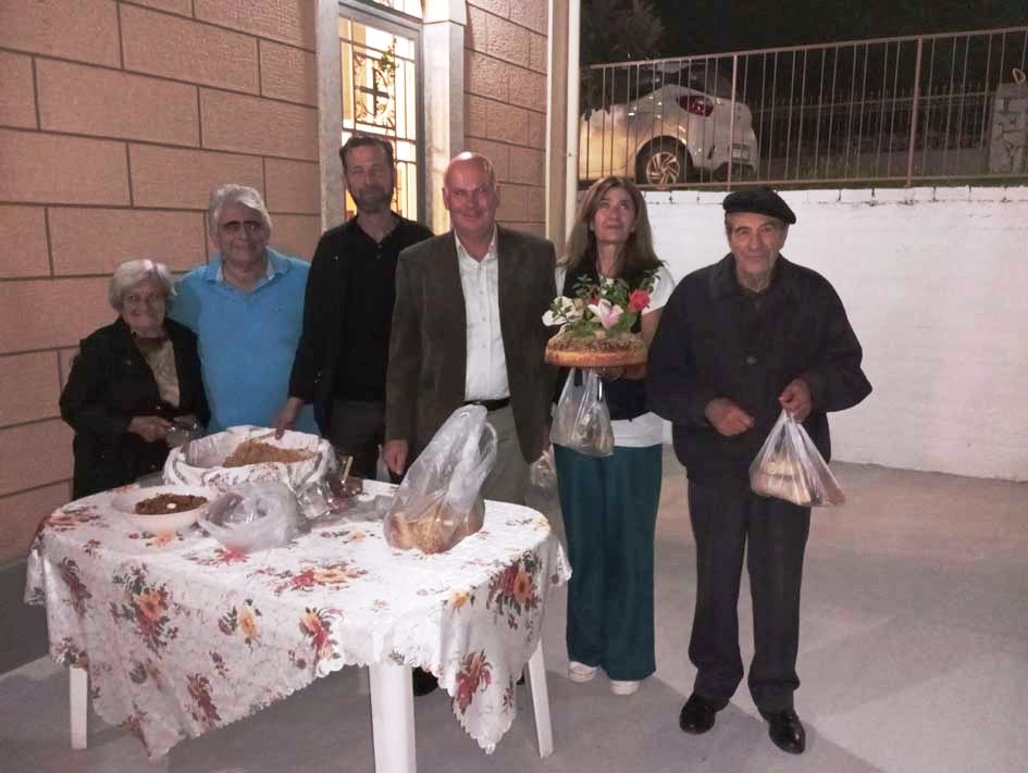 Μέσα στο εκκλησίασμα είδα και τους φίλους από τα Πετρικάτα, τη Βένια Φασόη και τον Φώτη Σωτηρόπουλο. Επίσης, Ο Φώτης Γασπαράτος στα κεριά και στους άρτους, με παιδιά του χωριού, να φροντίζου για ότι χρειάζεται.