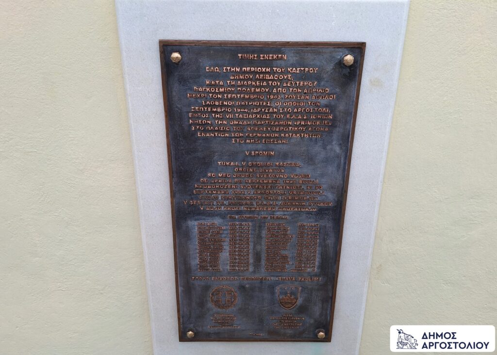 Η κα Tamara Weingerl Pozar, η οποία βρέθηκε στην Κεφαλονιά για να αποθέσει τιμή, στο μνημείο των Πεσόντων Σλοβένων, κατά την διάρκεια του Β’ Παγκοσμίου Πολέμου, στο Κάστρο Αγίου Γεωργίου, εξέφρασε στον Δήμαρχο Αργοστολίου, την ευγνωμοσύνη της για ο,τι έχει υλοποιήσει ο Δήμος στο σημείο, τονίζοντας παράλληλα ότι το Αργοστόλι είναι καθαρό και όμορφο, γεγονός που αρέσει πολύ στους Σλοβένους.
